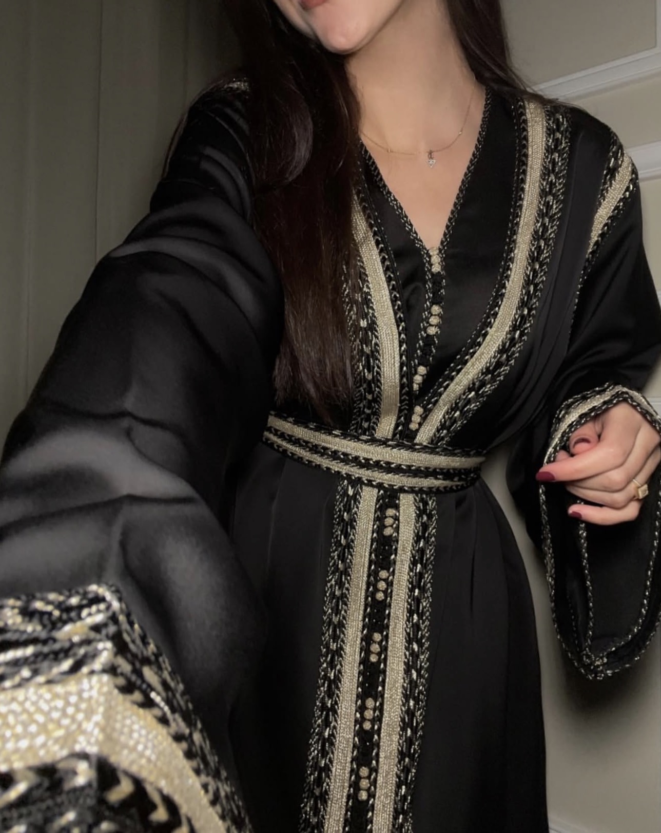 Kaftan Two Pieces – Black silky with Belt